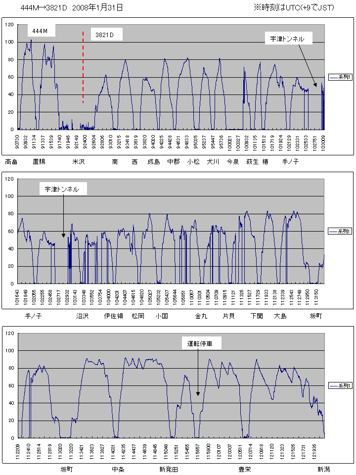 GPS鉄>快速べにばな1号 加減速 その2 (cwk)