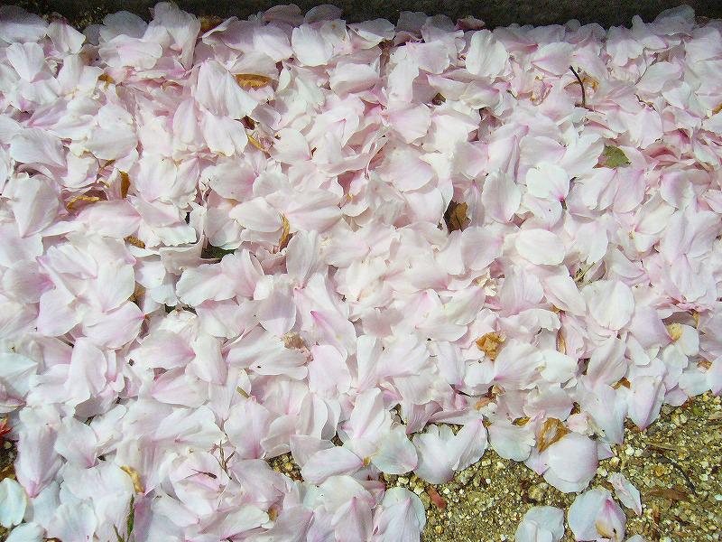 これは、地面に落ちた花びらなので違うんですけど、これが池とか川の水面の上だと『花いかだ』って言うんですって・・!