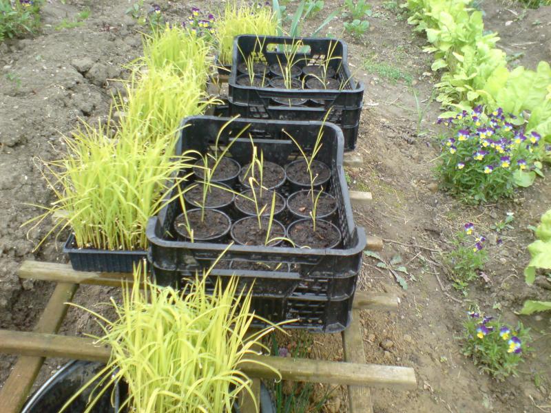 写真は今年丹精込めて作った陸稲の苗です。定植に向けて、一部を鉢植えにしてみました。