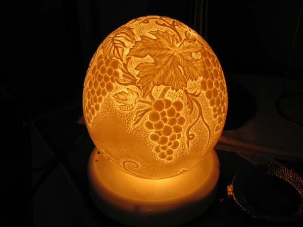 こんなのです。これはオーストリッチの殻で、中から電球で照らしているのですが。