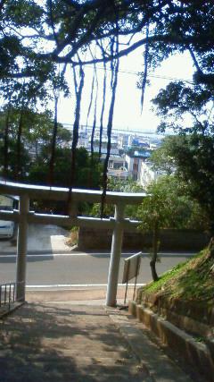 鳥居の上で、木の枝に垂れさがっているのは、何だと思いますか。木の根です。「ガジュマル」という南方の木で、種子島が北限とも、鹿児島県本土が北限ともいわれています。しかし、北限がどこか定かではありません。この髭(木の根)がやがて地べたに届き、それが芽を吹き大木となります。これが、本末転倒というのでしょうか。