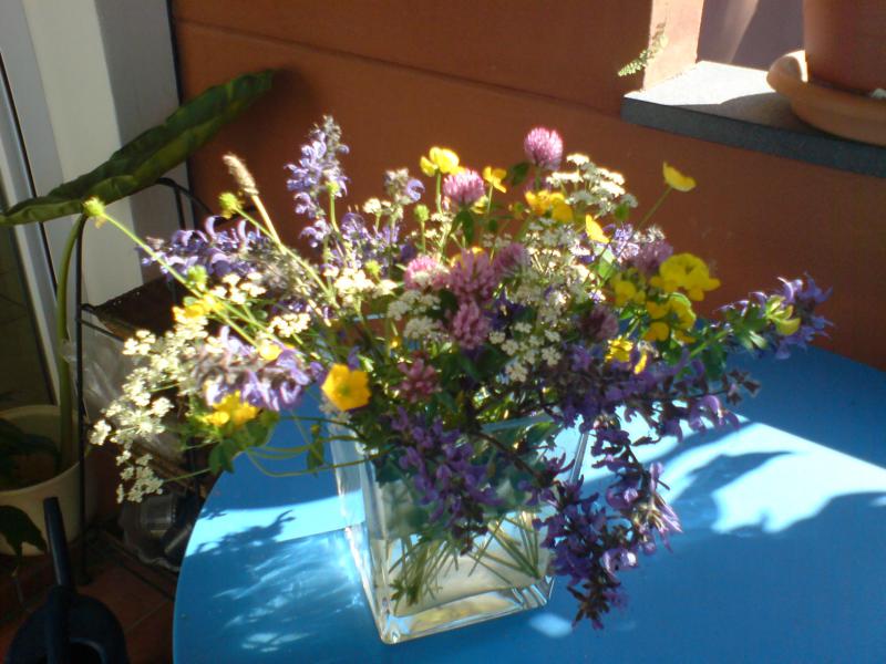 私は、畑にいくと必ず最後の2分くらい、ウサギの餌採りも兼ねてそこら辺をうろうろします。写真の花束もその一例です。
