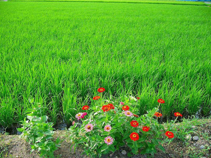 昨年もここに2〜3本咲いていました。今年は倍位に多くなっていました。 見渡す限り稲の濃い緑と畦の草の緑しかない所にオアシスみたいで、ホッとしましたので入れ足しました。