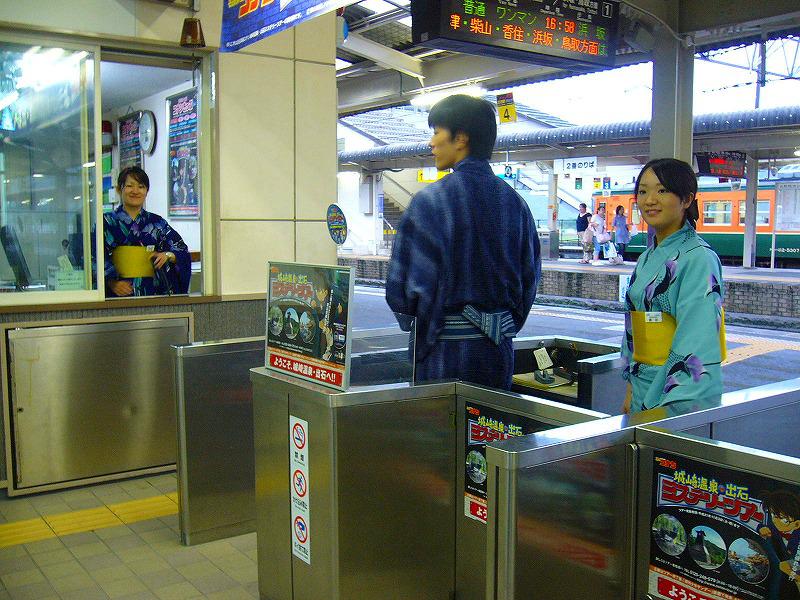 びっくり!・・浴衣姿の駅員さんなんですよ。