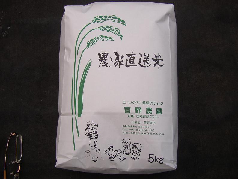 管野農園オリジナルのお米の袋、温かいですね! (山さくら)