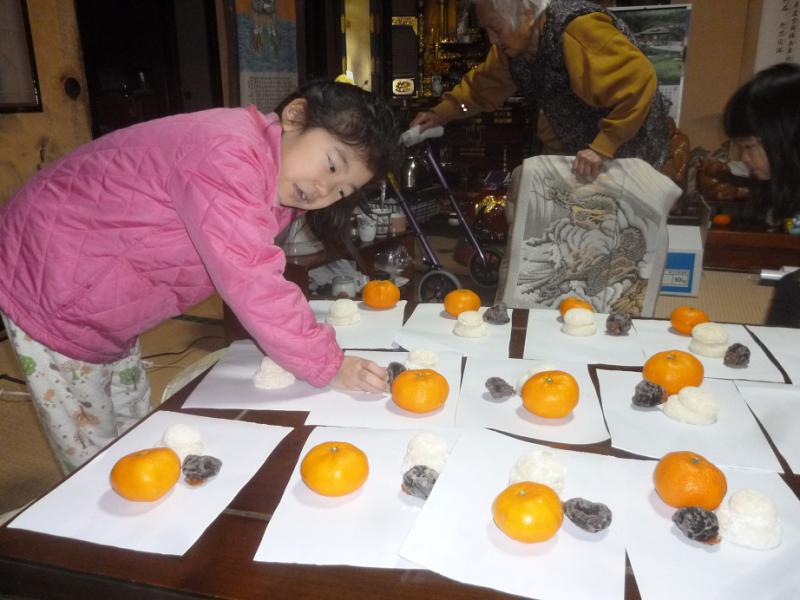 元旦の朝は家じゅうの神様にお供えをすることから始まる。