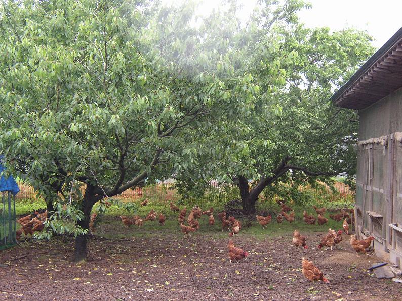 る」、「こんどはおかあさんだ」としばしの時間にぎやかに楽しんでいく。玉子でもなく、草地の上をのびやかに遊んでいるニワトリ達の姿でもなく、鳴き声が人を呼ぶなんて考えもしなかったことだ。人が来てくれるのはうれしい。僕の単調な農作業の