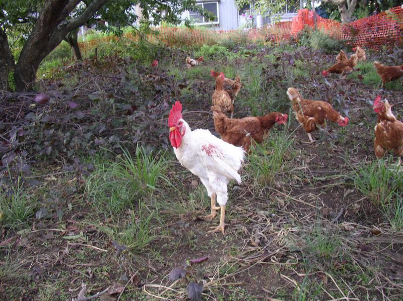 ニワトリたちは午後になるとローテーションにしたがって鶏舎の外にでる。お日様の暖かい陽射しのもと、草をついばんだり、砂浴びしたりしながらのんびりと過ごす様子は、見ている僕にとっても気持ちがいい。そんなのどかな光景を壊すのは野良猫などの闖入者だ。