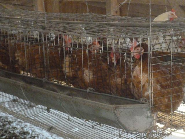 写真は我が家のトリたちではありません。利益の為に飼育されている鳥。自由を奪われている鳥たちです。でもここに居れば腹は満たされます。