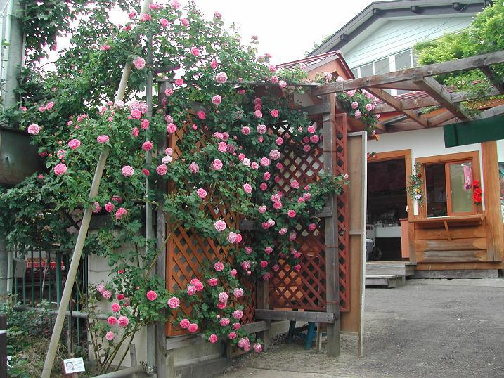 バラ園北入口の受付にある「ブルボンクイーン」もどんどん咲いています。