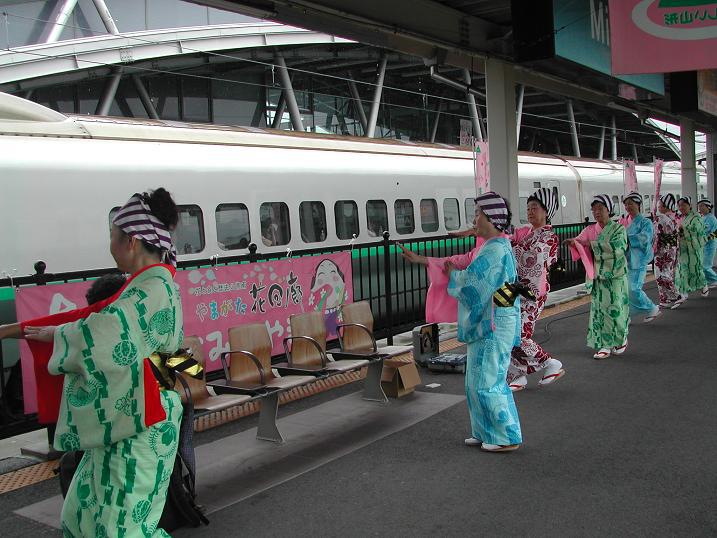 駅のホームでは”赤湯音頭”が披露されました。