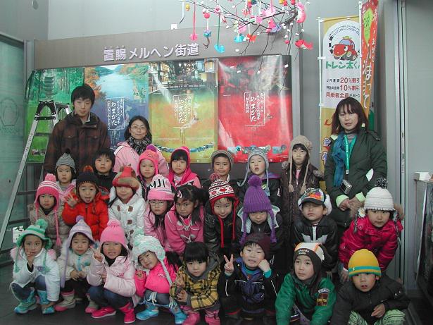出来上がった”だんごの木”の前で記念撮影です。ありがとうございました!