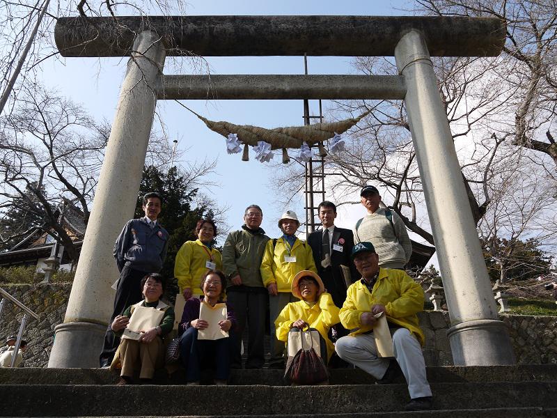 ボランティアガイド「南陽えくぼの里案内人」の皆さんも、研修のために見学しました。新しい注連縄をバックに1枚(^^)