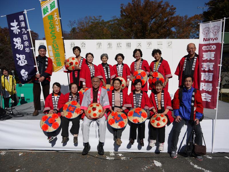 両日ともに「山形県人東京南陽会」の皆さんにお手伝いいただき、”南陽ブース”を盛り上げていただきました。またイベント広場で、花笠音頭を披露し南陽をPRしました(^^)