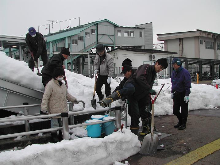 駅舎の横にたまっている雪も運んでミニかまくらを作っていきます。屋根から落ちてくるので他の場所よりも雪がたまっているんです。