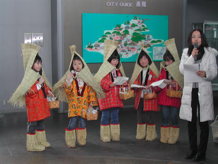 赤湯駅構内で「ながい雪灯り回廊まつり」のPRです。チラシと一緒に「特製大福」のプレゼントがありました♪可愛らしい”雪んこ”大人気でした(^^)