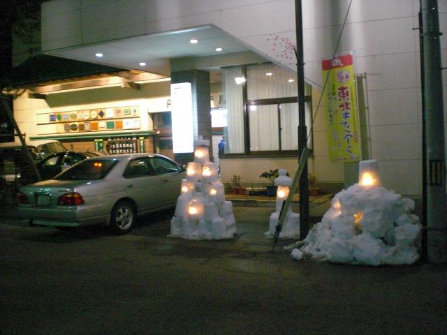 7日は赤湯温泉の旅館の皆さんにもご協力いただき、各旅館の前にオリジナルの「雪灯かり」を灯していただきました(^^)