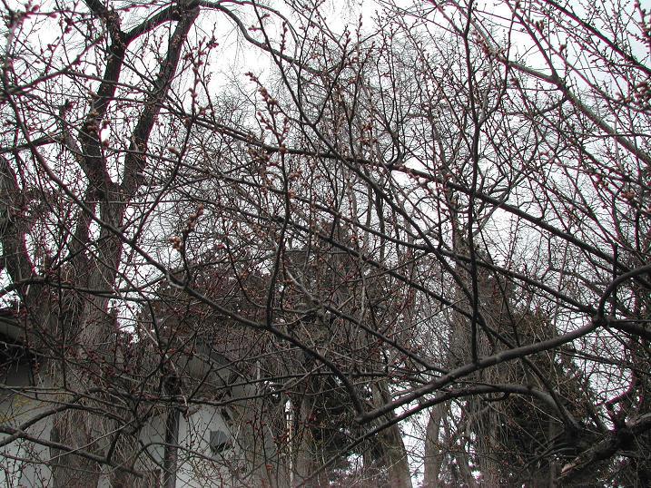 あたたかい日が続いたせいか、つぼみが膨らんでいるような木もあります。でも雪です・・・