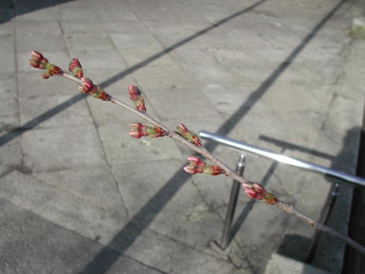 こちらは鳥居の横の桜です。かなり膨らんできていますね。
