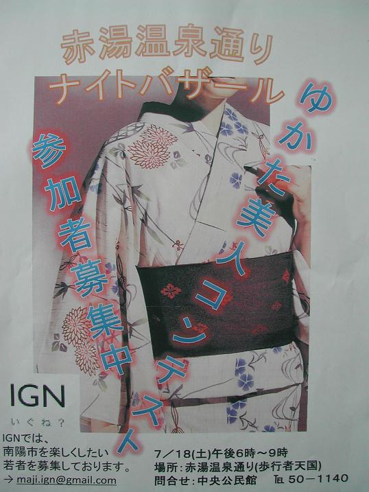 「ゆかた美人コンテスト」も同時開催されます。女性の皆さん、当日はゆかたを着てお越しくださいね(^^)