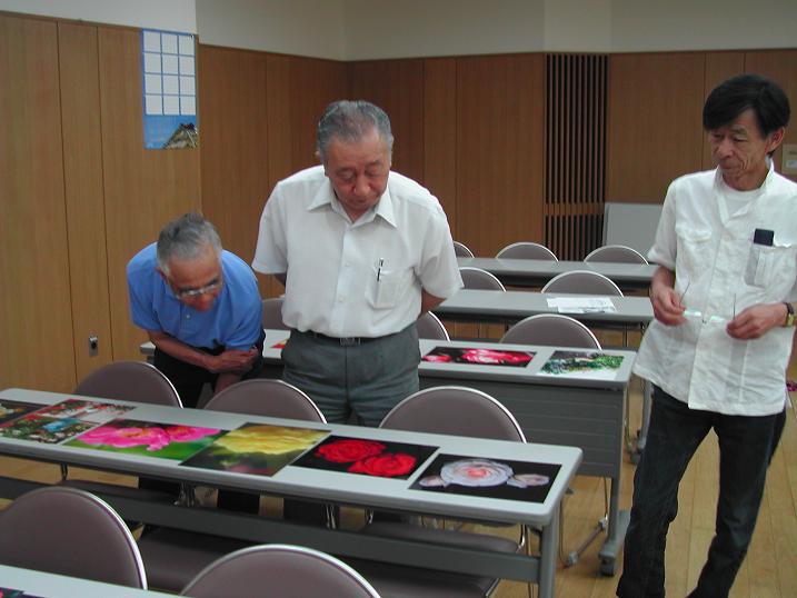 審査委員は南陽写友会の佐藤吉栄会長と遠藤博さん、そしてバラまつり委員会から小幡委員長です。