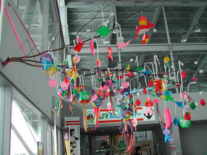 色とりどりの綺麗な”だんごの木”が出来上がりました。赤湯駅構内と待合室に2つ飾ってありますのでぜひご覧下さい♪