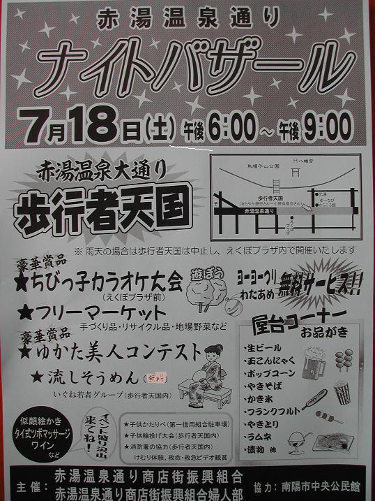 今週末18日に赤湯温泉通りで「ナイトバザール」が開催されます。温泉通り商店街の方々による企画で、屋台をはじめイベントも盛りだくさんです。ぜひ遊びにお出かけください♪