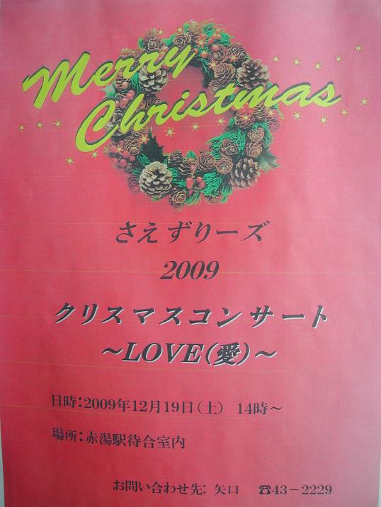 明日19日(土)午後2時から、赤湯駅待合室で”さえずりーズ”さんのクリスマスコンサートが行われます。