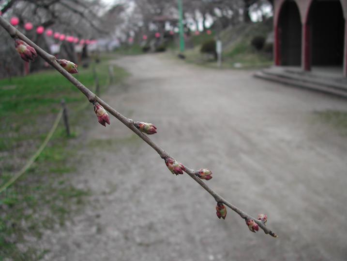 烏帽子山の桜、現在つぼみです。本日も寒い一日でした。今もすごい風です。開花はもう少し先になりそうです。