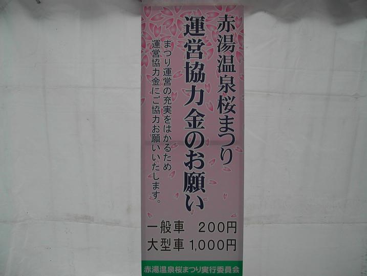 毎年「赤湯温泉桜まつり」期間中は、烏帽子山公園にたくさんのお客様が桜を見にいらっしゃいます。今後もこの「桜まつり」を多くの方々に楽しんでいただくために、桜の見頃にあわせて「桜まつり運営協力金」のご協力をお願いしております。(一般車200円、大型車1000円)