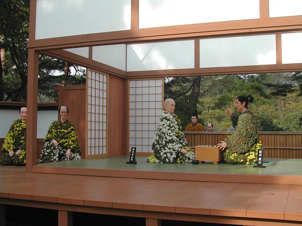 菊人形第5景は「林泉寺和尚 慶次拳骨一発」です。”天下の傾奇者”前田慶次が、囲碁の対局中に、高慢な林泉寺の和尚を思いっきり殴るという場面。なんとも慶次らしいですね。