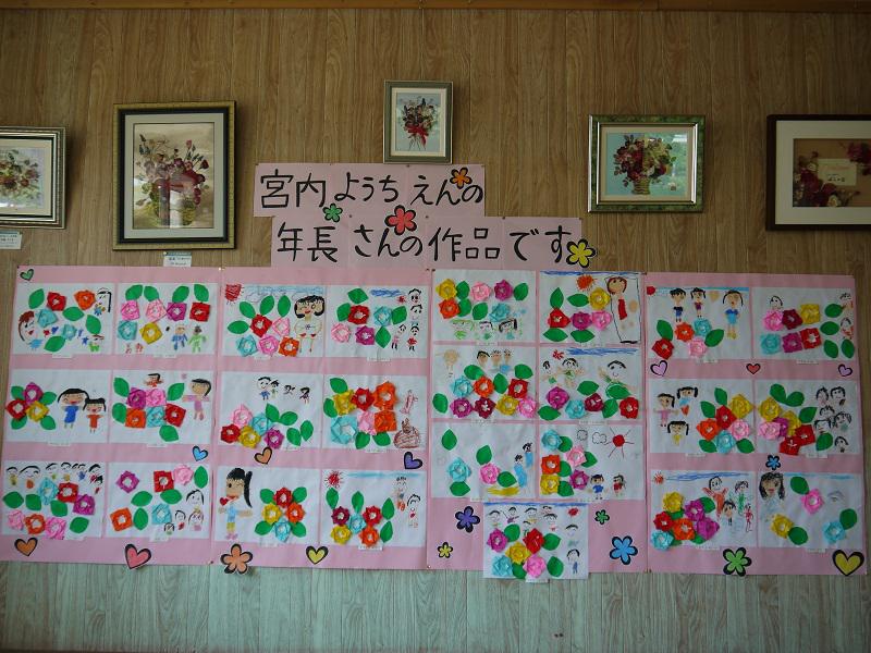 コミュニティーセンター1階に、宮内幼稚園の年長さんが描いてくれた”バラ園”を展示しています。どれも可愛らしい作品ばかりです。ぜひご覧ください♪