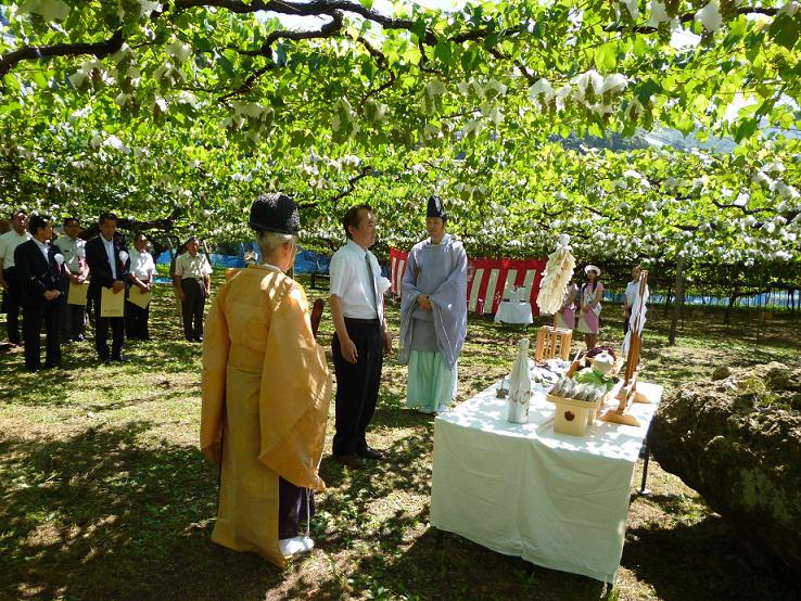 観光ぶどう園のオープンに合わせて、市内赤湯にある「紫金園」で開園式が行われました。