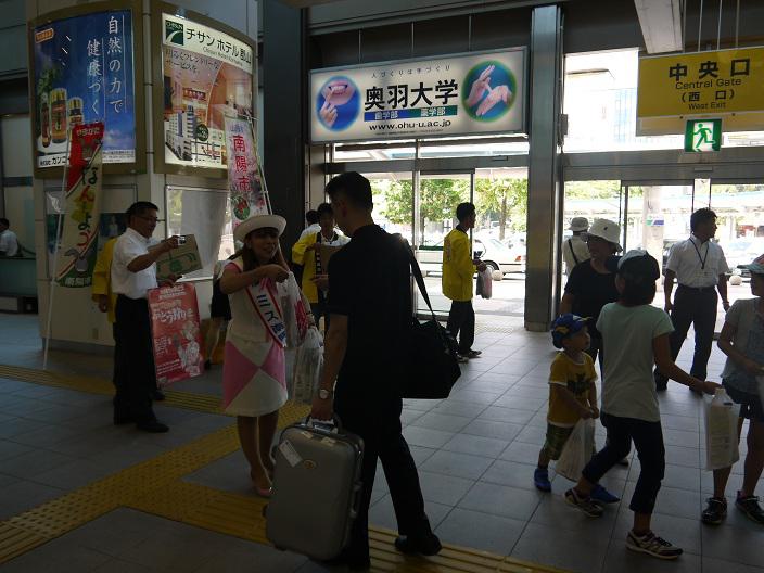 今度は福島県の各駅で、南陽産のぶどうを振る舞いPRしてきました!こちらは郡山駅構内の様子です。