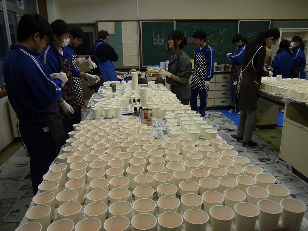 JRC部をはじめ他の部からも応援いただき、1000個以上のろうろくが完成しました。ご指導ご協力いただいた先生方、生徒の皆さん、ありがとうございました!