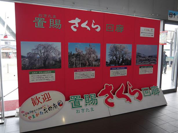 赤湯駅に「置賜さくら回廊」のPRボードが設置されました。鮮やかなピンクが目を引きます。開花はまだ先ですが、今から待ち遠しいです。