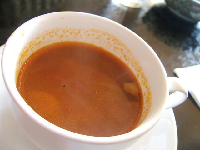 小鉢も付いたランチはスープかコーヒーが選べます。本日のスープはキャロット村の無農薬ニンジンがたっぷり入ったトマトスープでした。