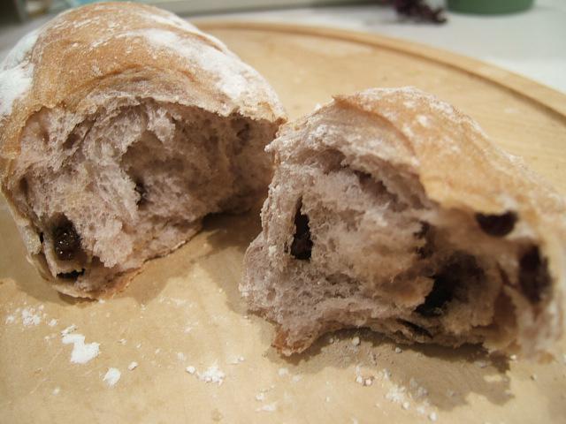 赤ワインのパン。ハード系かと思いましたが、リトルマーメイドらしい、やわらか生地でした。ワインの香りはそれほどないですねー。そのままちぎってパクパク食べられそうな感じですが、クリームチーズを塗って、周りをちょとだけカリッと焼いてもよさそうです。