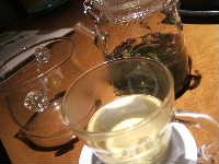 メニューに温かいお茶があるのもうれしいところ。すぐに酔ってしまうしかもポットと冷ます器まで付いてきます。