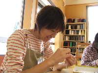 写真は作業所でお仕事中の遠藤あっこちゃん。今回も手作りの布人形など、かわいいものも販売されるのかな?