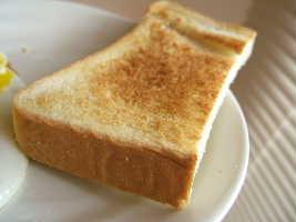 お砂糖は少な目なのではないでしょうか。焼き色が濃くなり過ぎずきれいについて、生地の塩味がソフトな香ばしさを引き立ててくれます。サクッの後に、ほやんとした口溶け。生パンもいいですが、トーストならではの風味も楽しめました。Yさん、ごちそうさまでしたー。