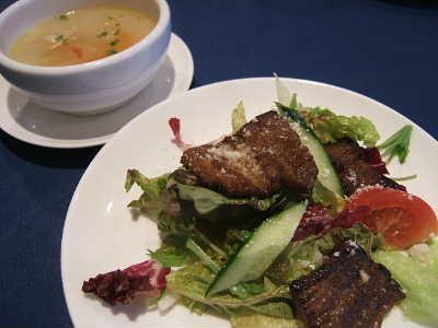 前菜はポークサラダと野菜のスープでした。