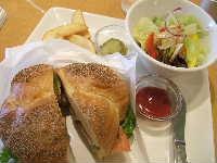 仙台ロフト8階にあるカフェでランチ。エビとアボカドのカイザーサンド(693円)。サラダとフライドポテト付きです。