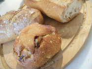 神戸・大阪物産展で買った『ビゴのパン』。なんというか、やっぱりちゃんとおいしいかったです。手前はドライトマトがみっちり入ったパンで、奥がバケットとくるみパン。くるみはそんなにたくさん入っている訳でもないのに、どこを切っても香ばしさがある、こゆ〜い味。皮の焼き込みの厚さもほどよく、個人的にとても好きなパンでした。
