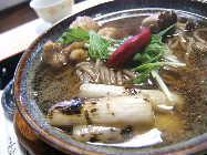 羽黒町にある『松が岡開墾場』の中にある食事処でお昼。カメラマン0さんご注文の鴨南蛮そば。焼いたネギが香ばしそうです。