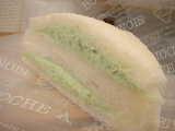 こまかな粒々を残したじんだん生クリームをサンドした「じんだん生サンド(130円)」。耳なしタイプ。分類は菓子パン。ここのお店で使っているスライサーはとても正確なようで、厚さはぴったり1cm。以前の生地はとてもやわらかで、お総菜の具の場合は特に支えきれなかったのですが、最近は立ち上がりがしっかりした生地になったよう。片手で持っても大丈夫でした(笑)。