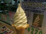 味は通常だしているバニラソフトと比べてみないと分かりにくいのですが(これが分かれば、あなたはかなりのソフト通。私もソフトに関してはそれなりのキャリアを積んできたと自負していますが、悔しいけれど今回は降参〜)、お店の方いわく「いつものバニラとちょっと違う甘さに仕上がっています」とのこと。メイプルはカルシウムなどのミネラル分が含まれているので、健康度がアップしたソフトということですね。