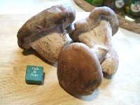 米沢で栽培しているというしいたけ。あまりの大きさにびっくり。隣に角砂糖を置いてみました。厚めに切ってキノコのステーキにしたらおいしそうです。