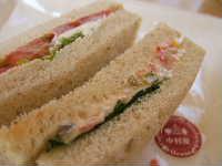イートンインのスペースで食べてきました。豆サラダのサンドイッチ。時折ぶにぶにする食感があるので、どんな豆かと思ってよくみたらコンニャクでした。意外ですがサンドイッチの具にしてもいけますね(^^)。