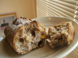 数種類のドライフルーツが入ったライ麦(かな?)パン。こちらは意外にさっくり系。ほどよく軽やかで食べやすく、いろんな味がしみた生地は、最後まで楽しく食べられました。